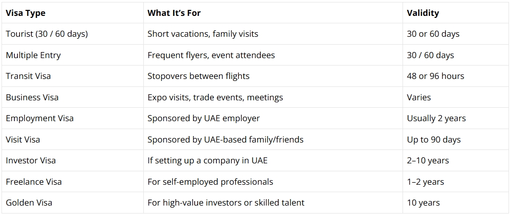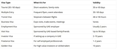 When applying for a visa to Dubai, it is imperative to know the various types available based on your travel intentions. Each visa category has its own set of requirements and characteristics that cater to different needs.